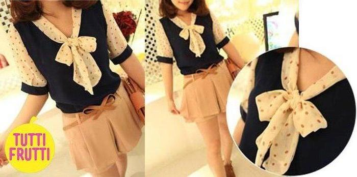 Blusa/polera con cuello de moño, sin botones. Color azul talla S-M pequeño