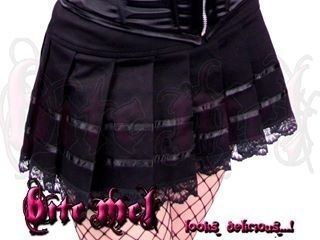 Mini falda plisada con aplicación de cintas y blondas. Cierre trasero. tela Gabardina. Confección a medida. Desde XS a XL.