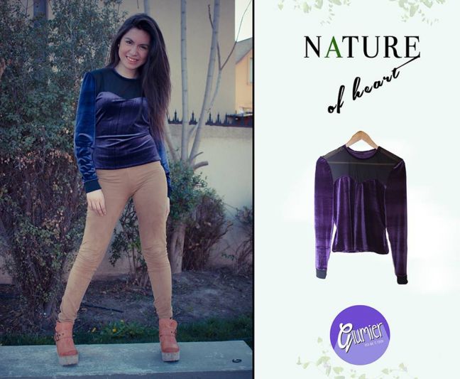 -Polera heart de terciopelo- Talla 1: XS/S