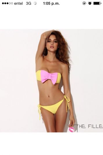 bikini amarillo con cinta rosada en la parte de arriba talla M
