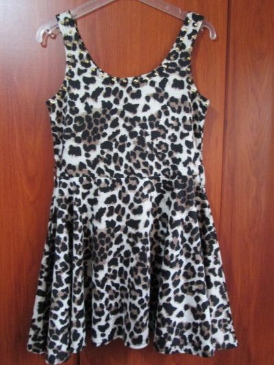 Vestido animal print con tachas doradas en el cuello, mide 78 cm de largo, talla M, NUEVO.