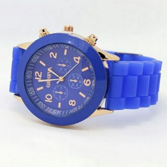 Reloj geneva color azul, correa de silicona y aplicaciones en dorado