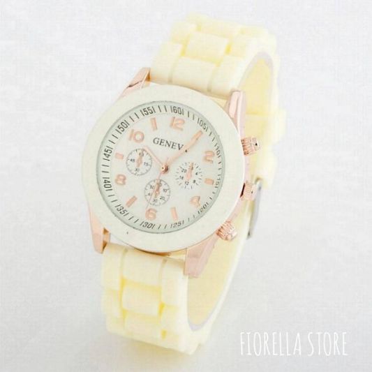 Reloj geneva color beige, correa de silicona y aplicaciones en dorado
