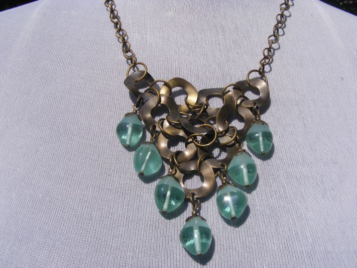 Collar argollas, hojas y cadenas en bronce envejecido con vidrios indú.