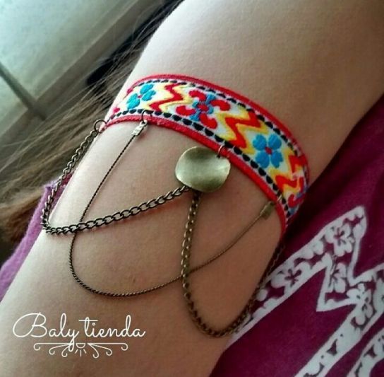 brazalete ajustable con tela y cadenas en color envejecido