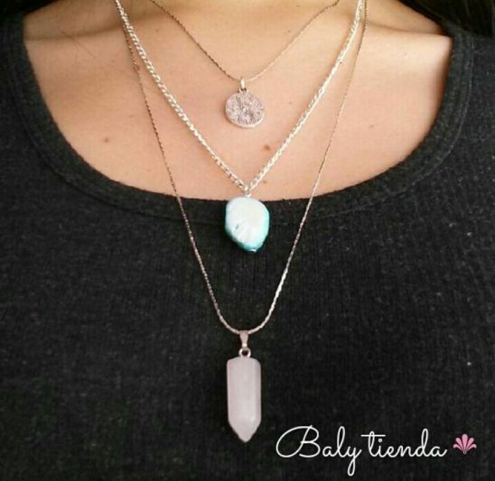 collar triple con cuarzo rosado