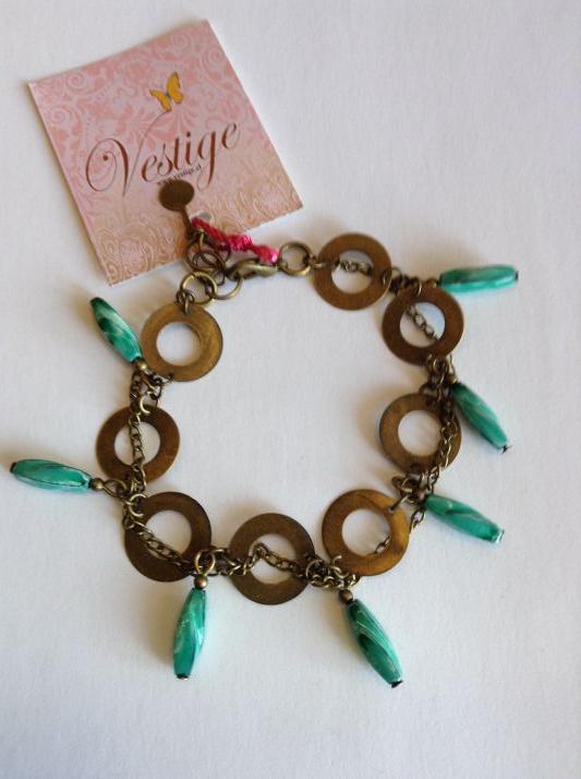 Pulsera adenas y argollas bronce con caucho revestido