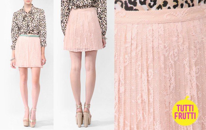 Falda de encaje tableada. Rosa. Forever 21. NUEVO.