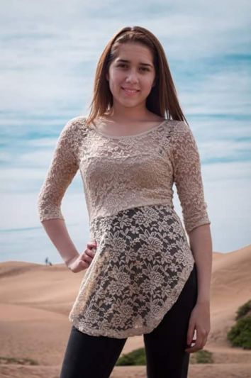 Polera estilo peplum de encaje color cafe claro. Talla S