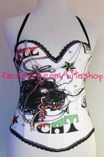 Corset Algodón estampado. Interior con barbas para dar firmeza al corsé. Espalda elasticada, ajuste con broches macho y hembra.