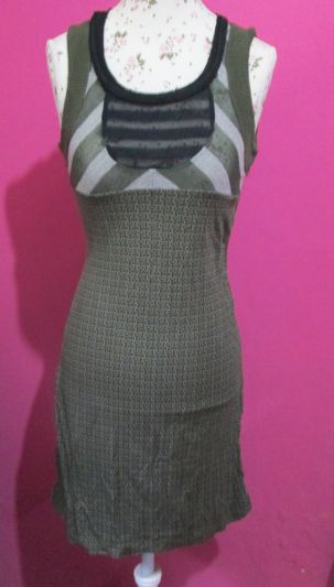 Vestido estilo bodycon, talla S también podria servir para una M, llega 1 palma arriba de la rodilla aprox. Mide 90 cm de largo.