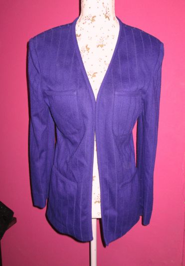 Blazer de algodón con 4 bolsillos, color morado, no se abrocha, talla L.