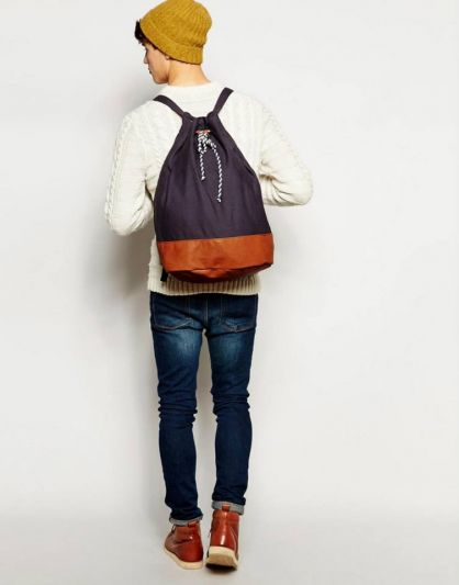 Bolso marca asos, azul con detalles de cuero.