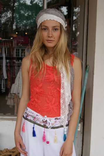 Blusa en tejido de jersey doble con flores del tono aplicadas encima en el delantero, la espalda es semi transparente.queda una negra y una salmón.