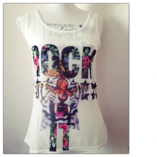 Polera blanca gasa ′rock′