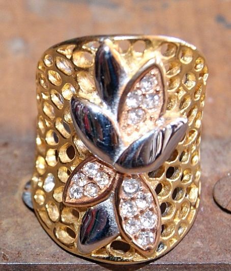 Anillo de acero dorado, con aplicaciones de pequeños circones