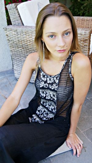 Blusa de malla tejida con lentejuelas y aplicaciones de flores bordadas beige,