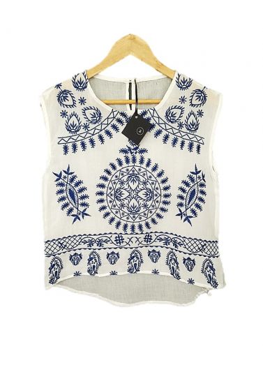 Blusa de lino bordada en el frente