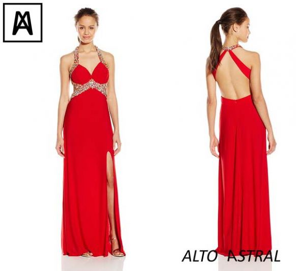 Vestido escotado sin espada y bordado mostacilla plata y dorado
