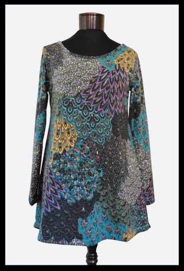 Chaleco largo pavo real de lanilla.